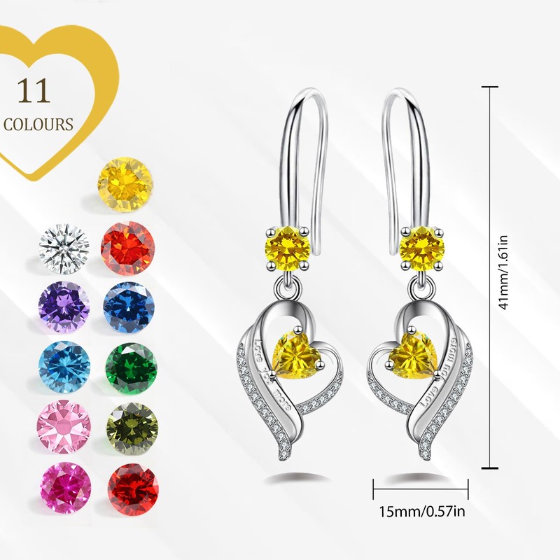 Yellow Earrings Sterling Silver Drop Earrings for Women, Silver Earrings with Cubic Zirconia, Hypoallergenic Earrings Topaz Earrings Birthstone Jewellery Gift for Birthday Christmas Anniversary