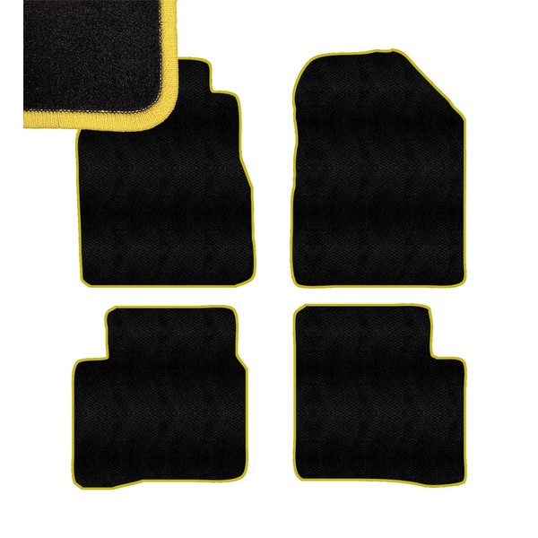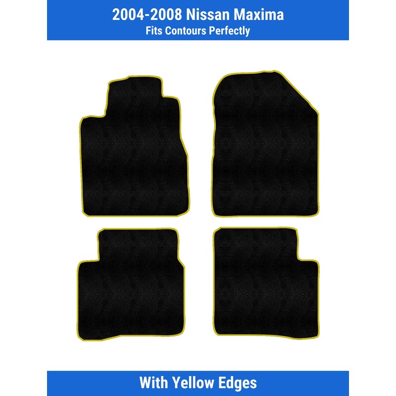Yellow Edge Custom Fit Front & Rear Carpet Floor Mats, Black, Compatible with Nissan Maxima 2008 2007 2006 2005 2004