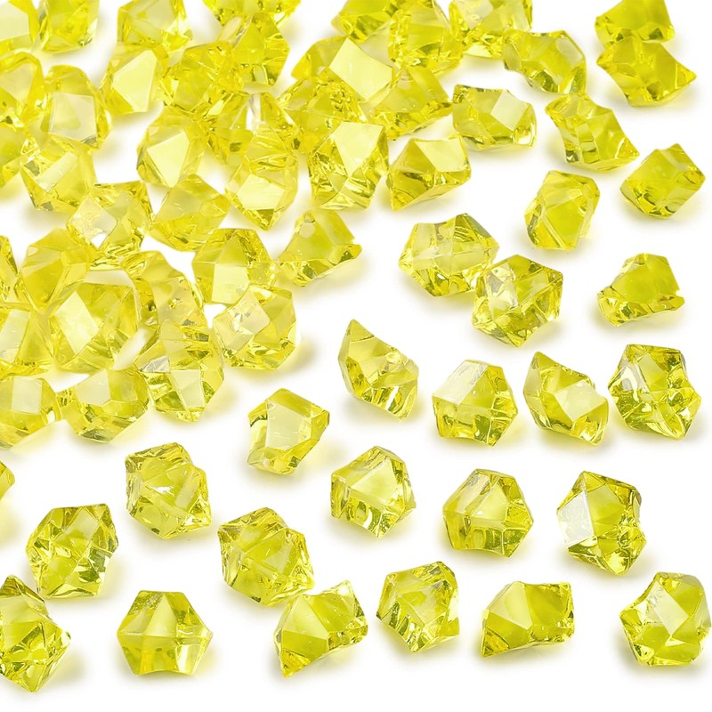 Yellow Fake Crushed Ice Rocks, 150 PCS Fake Diamonds Plastic Ice Cubes Acrylic Clear Ice Rock Diamond Crystals Fake Ice Cubes Gems for Home Decoration Wedding Display Vase Fillers by DomeStar