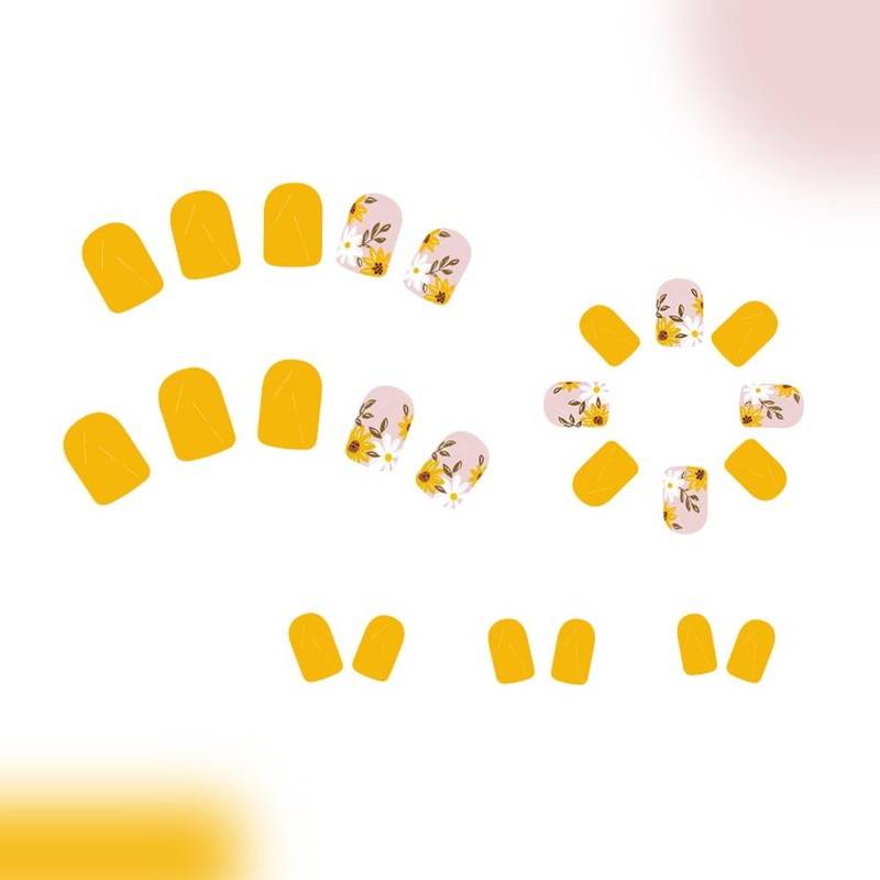 - APPLICATIONS: These yellow flower nail designs can make you stand out in parties, dates, weddings, proms and daily life. It is also suitable for any DIY nail art, family day or getting ready for a date. Give these beautiful false nails to your girls and they will be very happy.