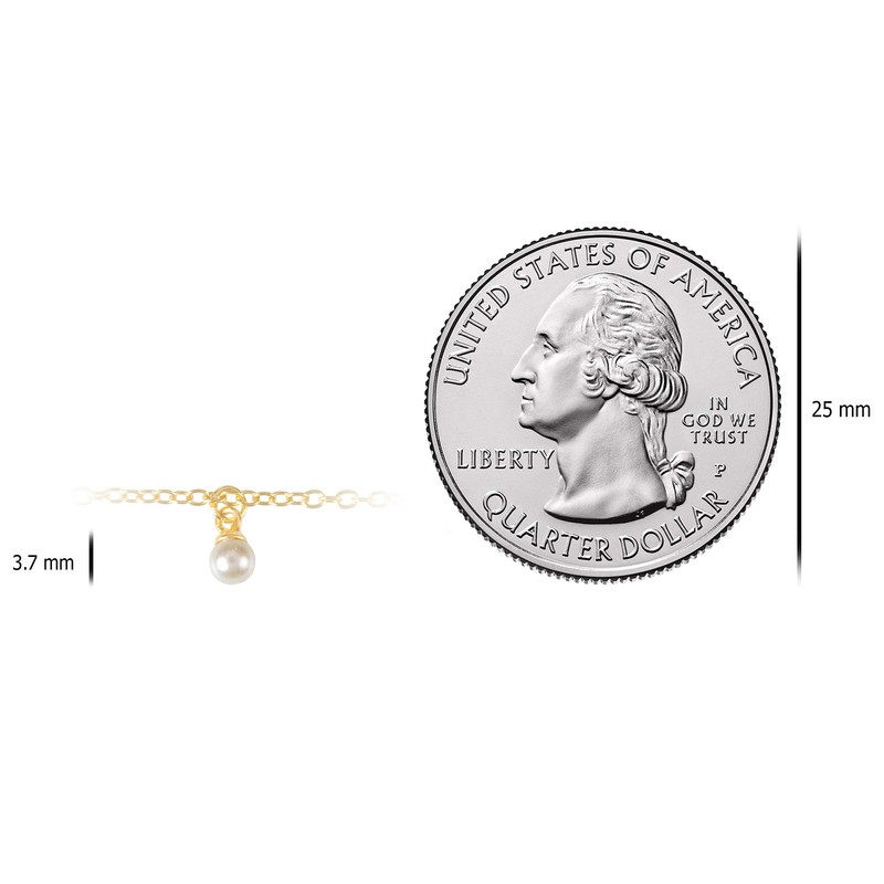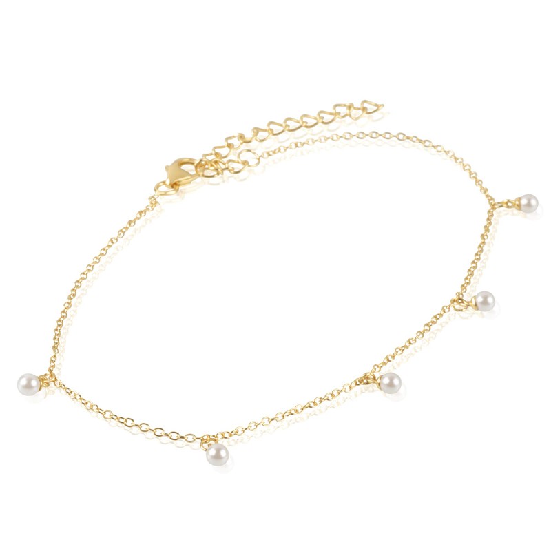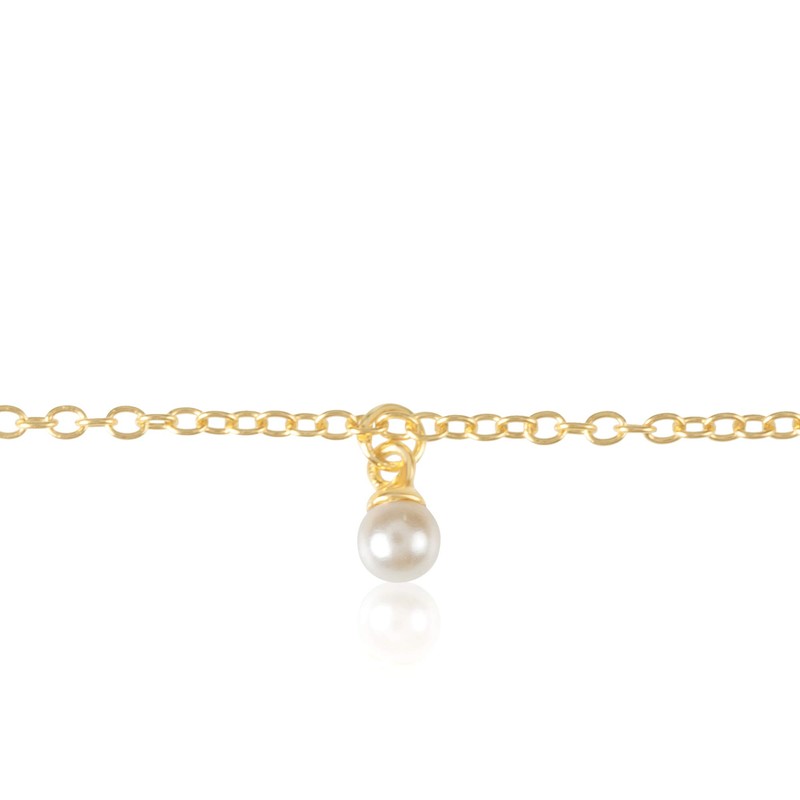 Yellow Gold Plated Sterling Silver Faux Pearl Dangle Station Anklet