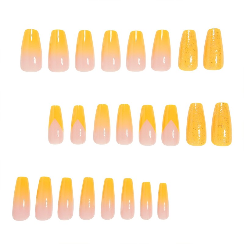 24pcs Yellow Gradient Press on Nails Long Coffin Shape False Nails Set for Women Nail Art Decoration