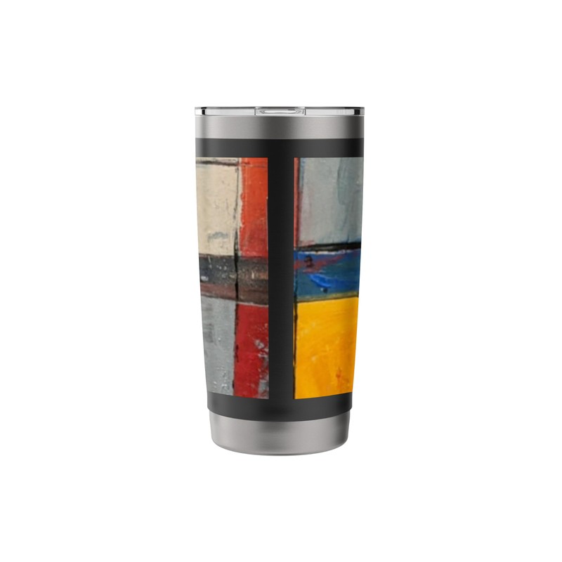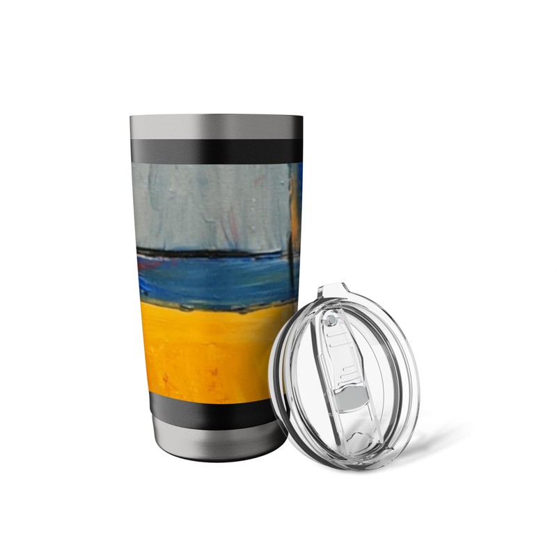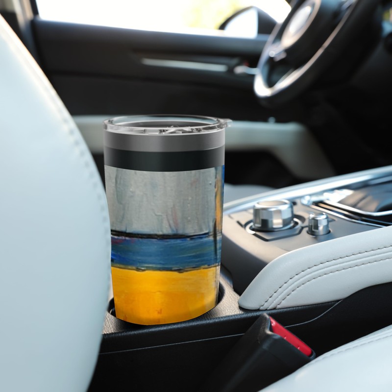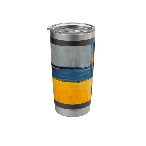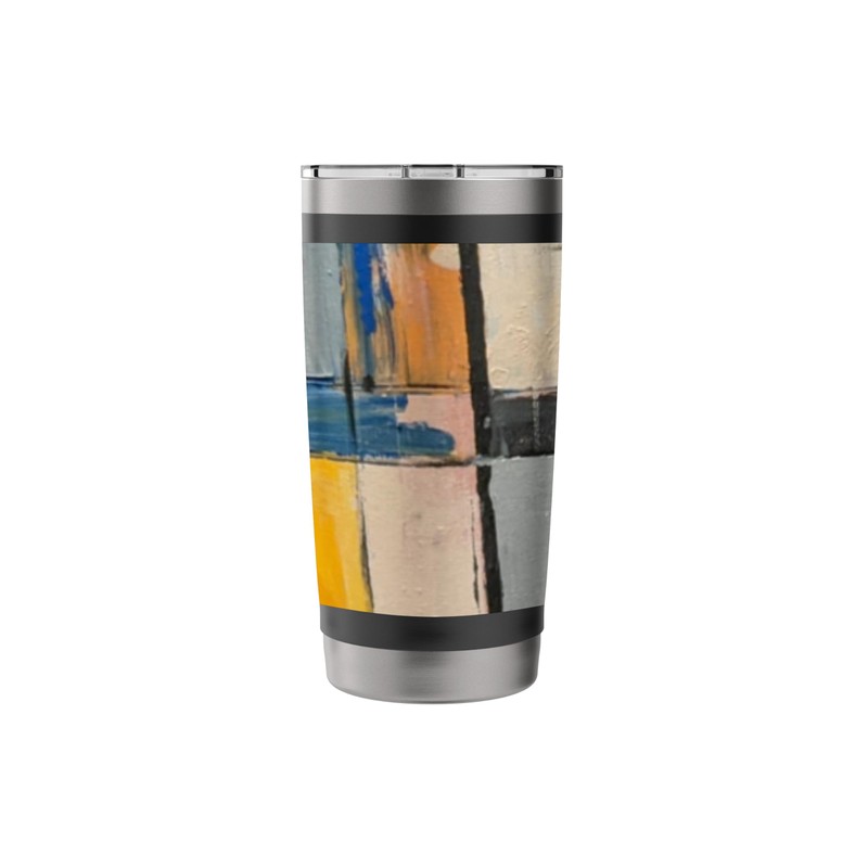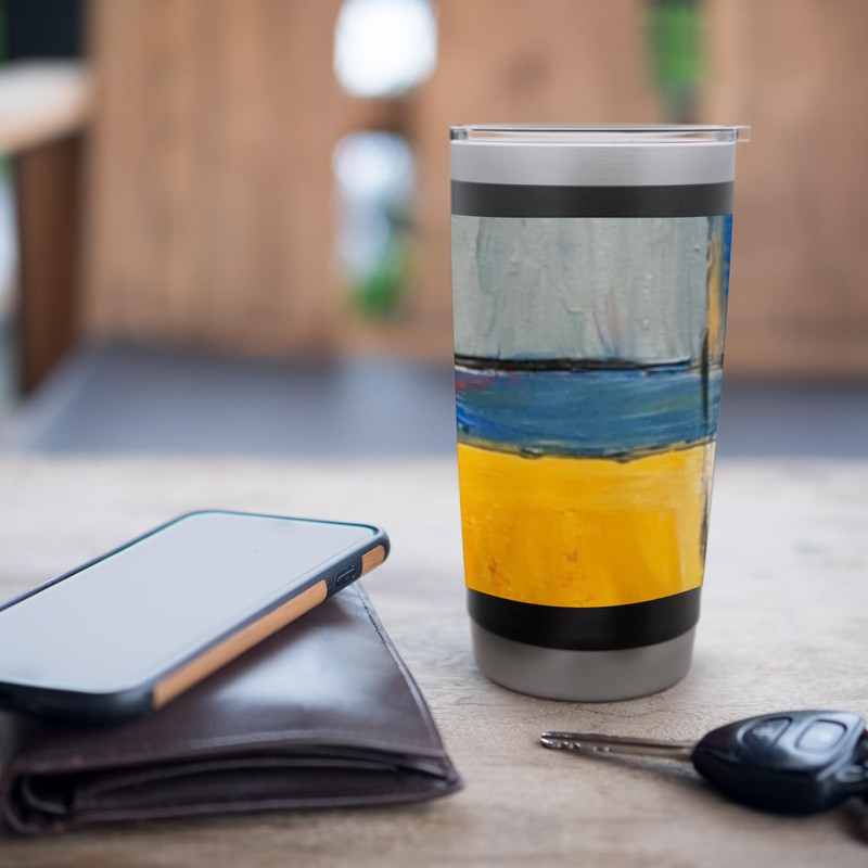Yellow Gray and Beige Pastel Colors Abstract Art Painting Stainless Steel Insulated Tumbler