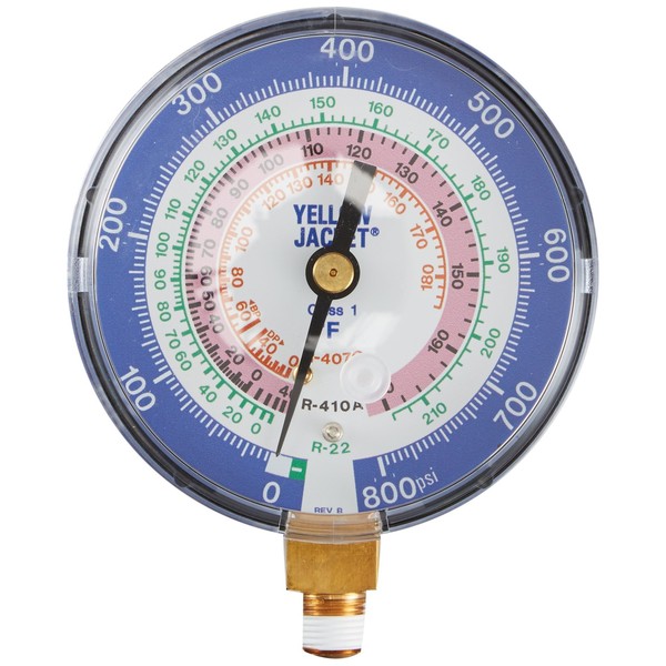 Yellow Jacket 49134 Low Side Replacement Gauge, R-22/407C/410A degrees F,Red/blue