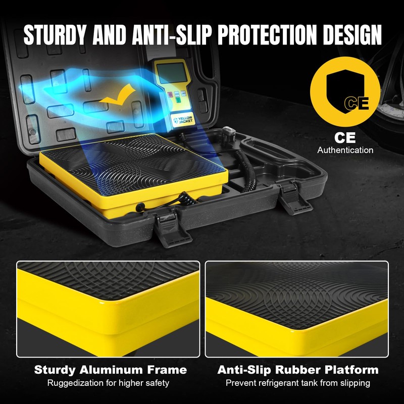 YELLOW JACKET Refrigerant Scale 220 LBS HVAC Freon Scale Ultra-Large LCD Screen High Precision Electronic Refrigerant Charging Weight Scale with Portable Case for Recovery Tanks