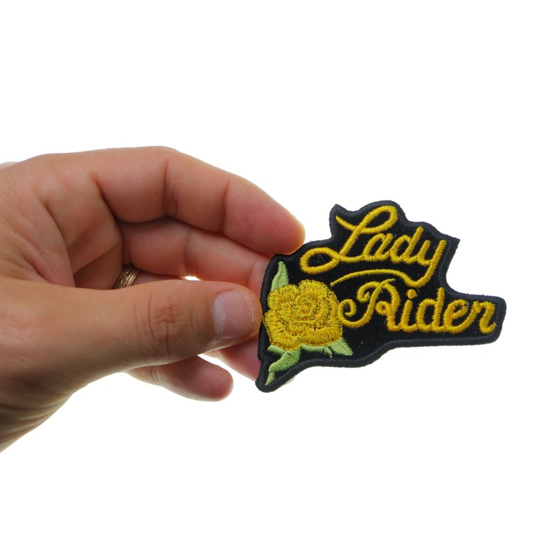 Yellow Lady Rider Rose Patch - 3x2.5 inch. Embroidered Iron on Patch