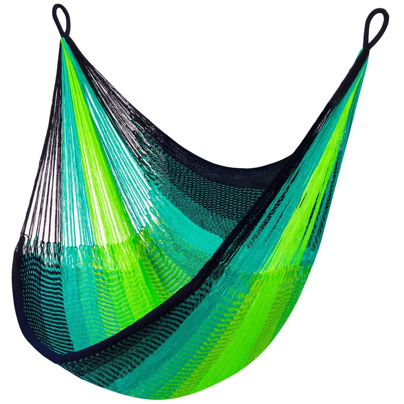Yellow Leaf Hammocks - “St. Lucia” Hammock, Hanging Chair Hammock Swing, Fits 1 Person (330 lbs), Neon Green, Blue & Turquoise, Handwoven, Shareable, Weathersafe Hammocks
