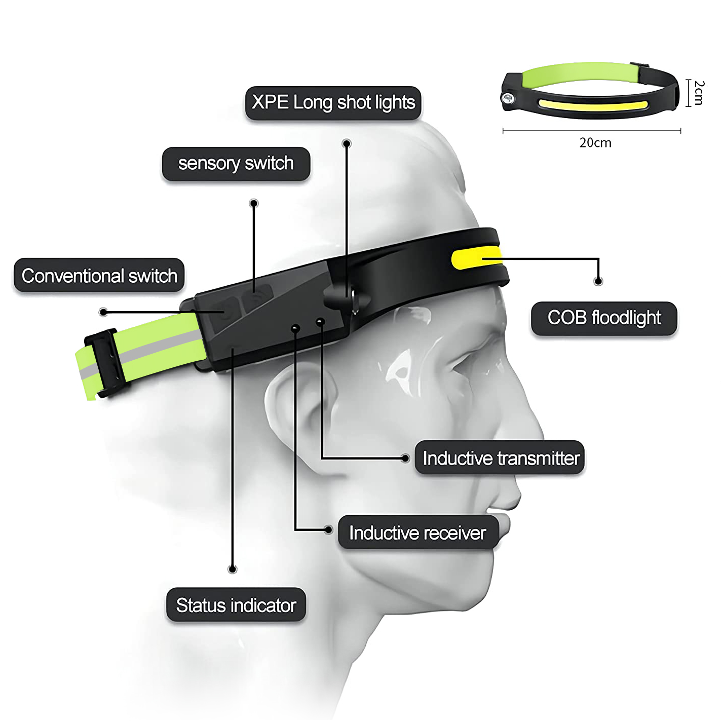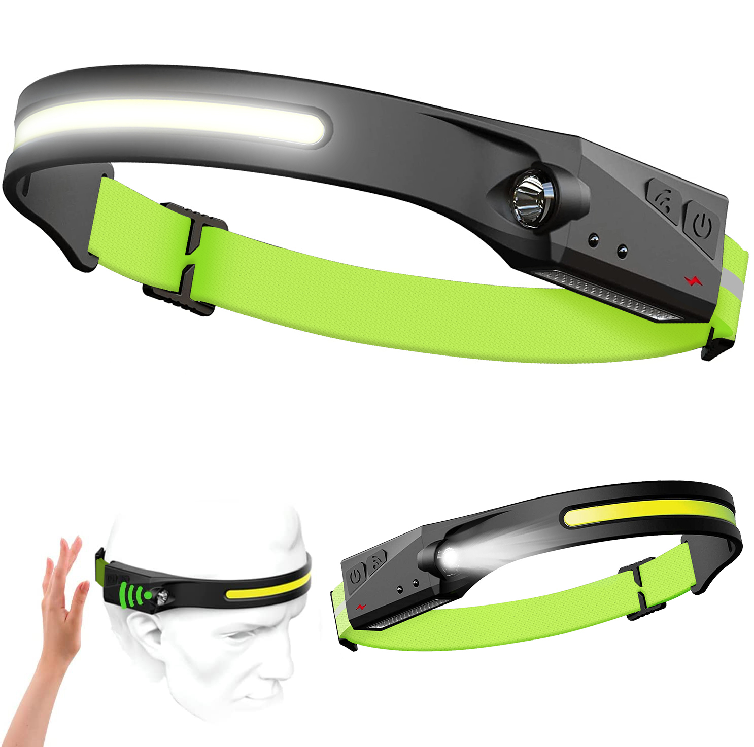 • Fluorescent green & Silver reflective tape Adjustable Headband