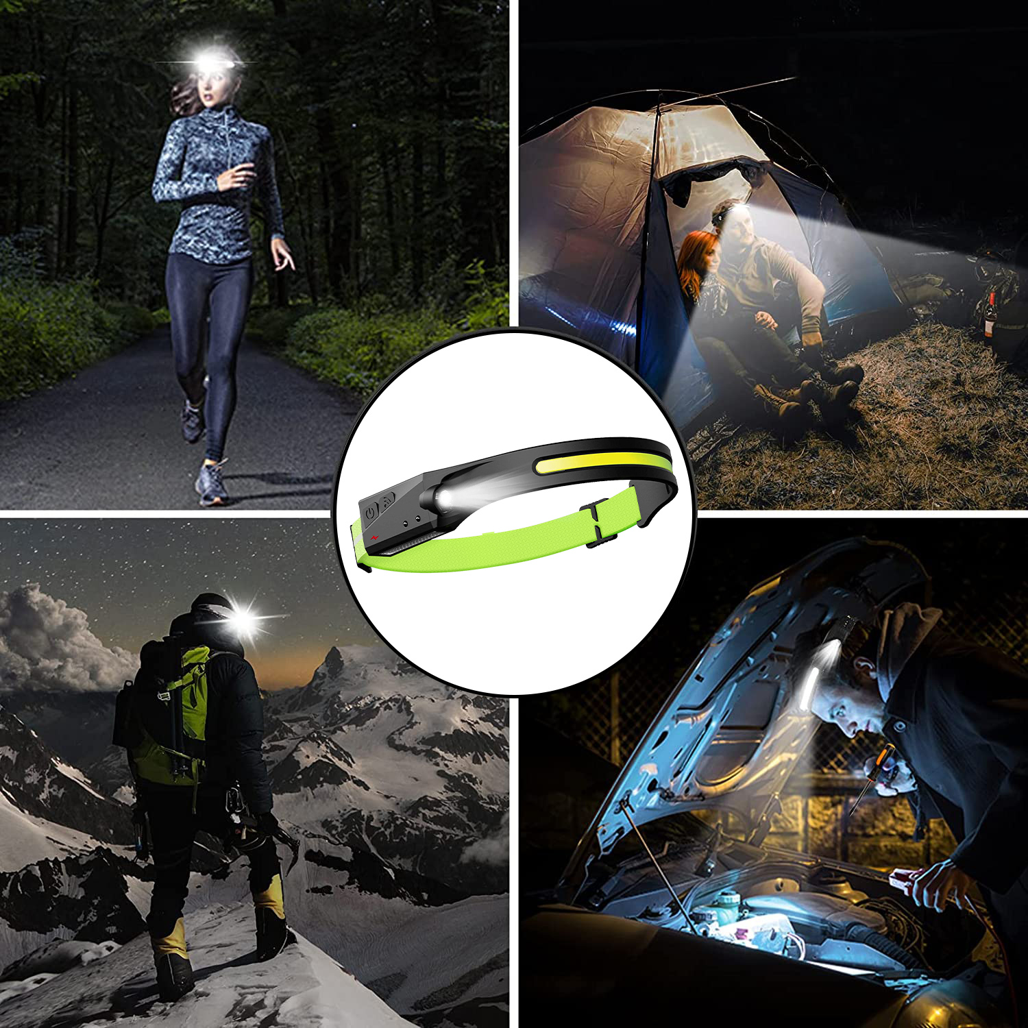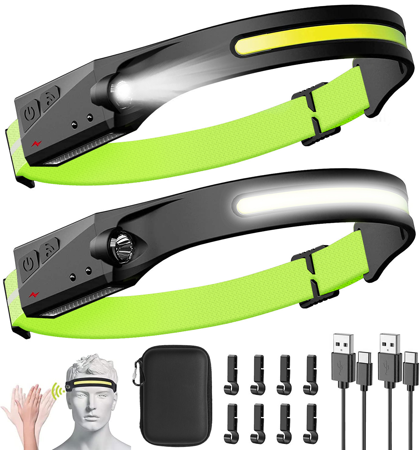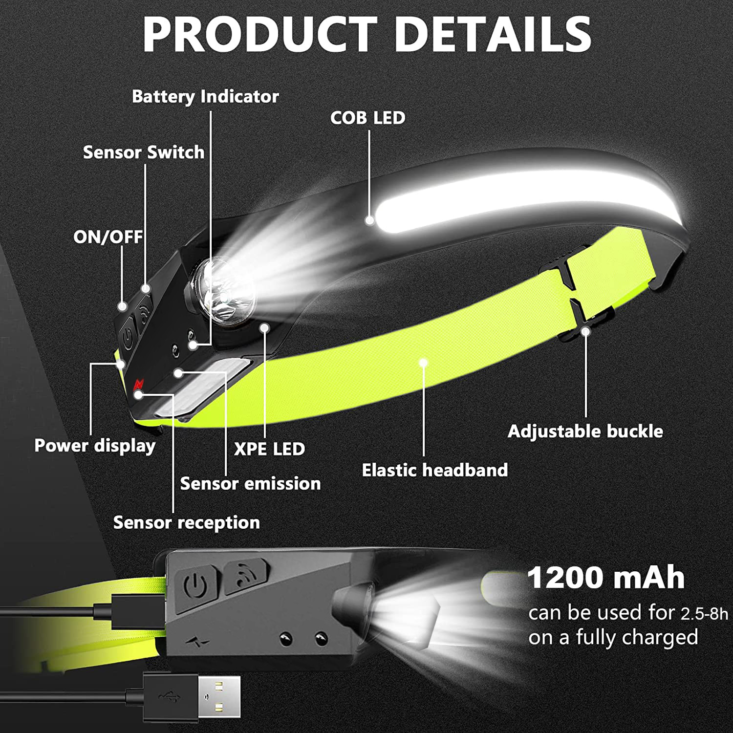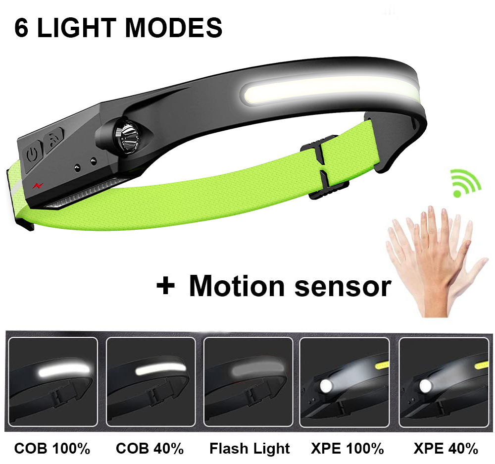 • Features: Bright & 230°Wide Beam, 5 Light Modes, Motion Sensor, Lightweight & Adjustable Headband, IPX4 Waterproof, Hand-free, Multi-purpose, Rechargeable