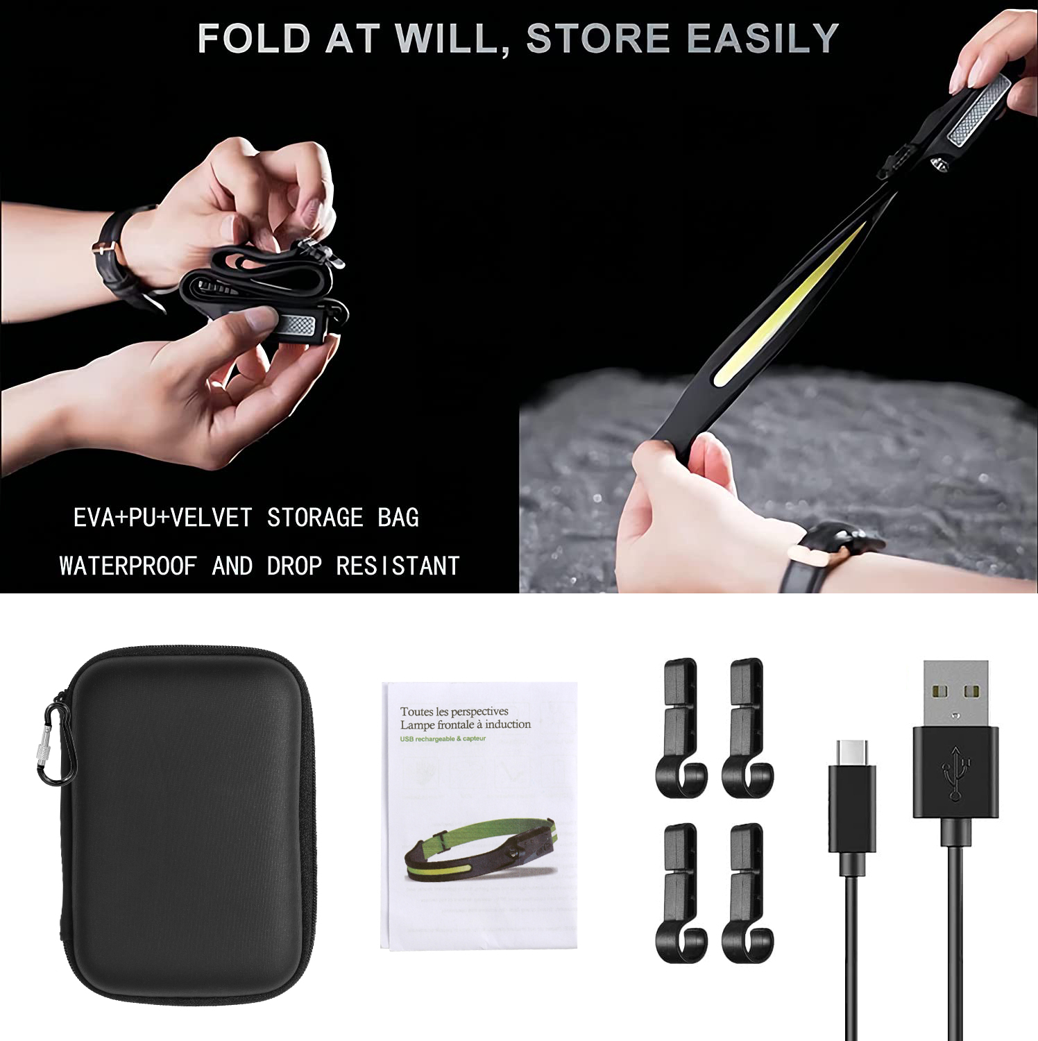 • Fluorescent green & Silver reflective tape Adjustable Headband - with this excellent headlight, you will feel very safe in the day and night. The led headband is made of ABS and silicone, it is soft and comfortable, just only 3.5 ounces. It's possible to fold but not affect the use, light weight and small size design can easily fits in your pocket.