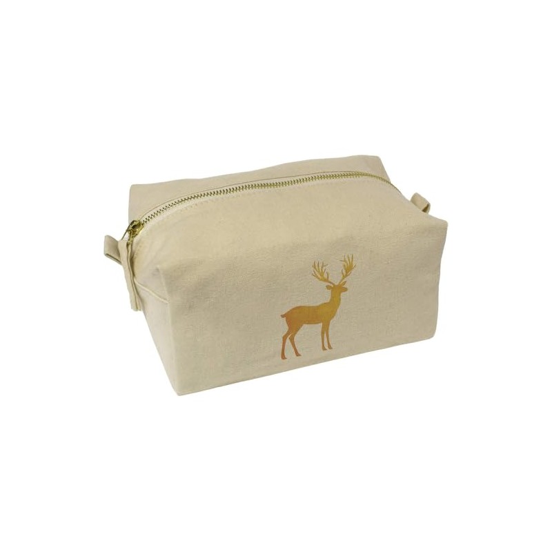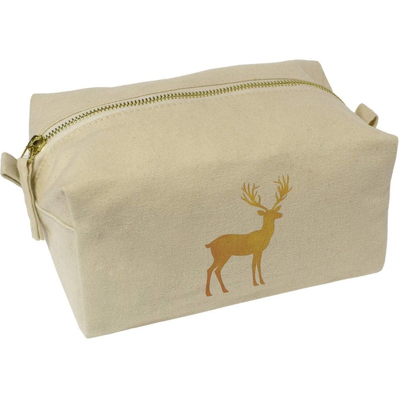 'Yellow Reindeer Stag Silhouette' Canvas Wash Bag/Makeup Case (CS00042734)