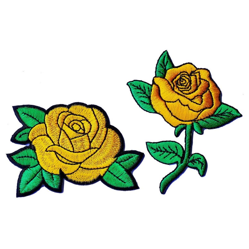 - DESIGN: Set of 2 beautifully embroidered yellow rose patches featuring vibrant golden petals and emerald green leaves
