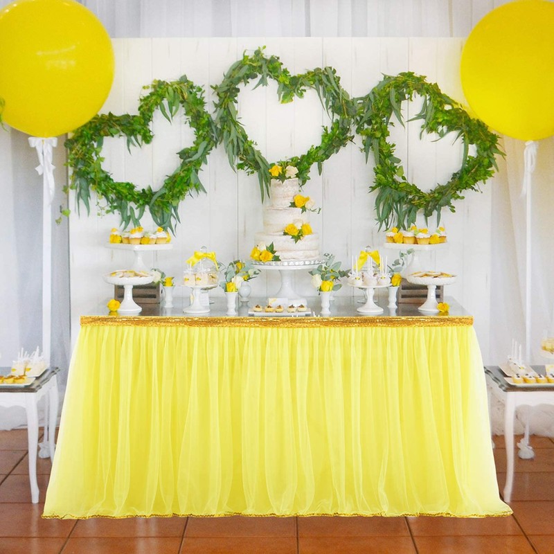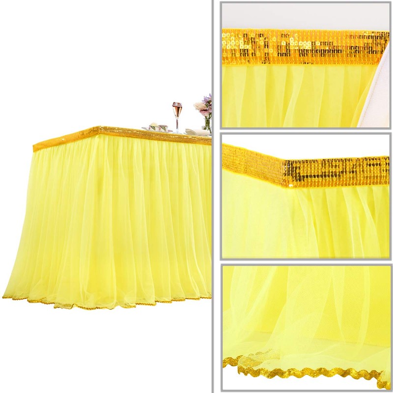 - Handmade :Yellow skirt for table will make your party decoration a showpiece that is unforgettable, fun and elegant!You can highlight the look of dessert tables or cake tables with this tulle table skirts,which is every kid's favorite and love.