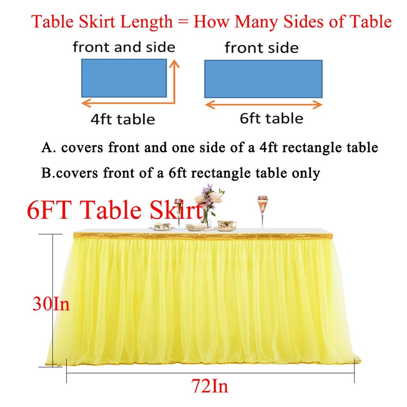 - Recyclable table skirt: Yellow tutu table skirt is perfect choice to decorate the party. Such as Little bee ,sunflower themed or Princess Belle themed party, birthday,baby shower, wedding, anniversaries or other events.It will bring a joyful mood into your upcoming special occasions.