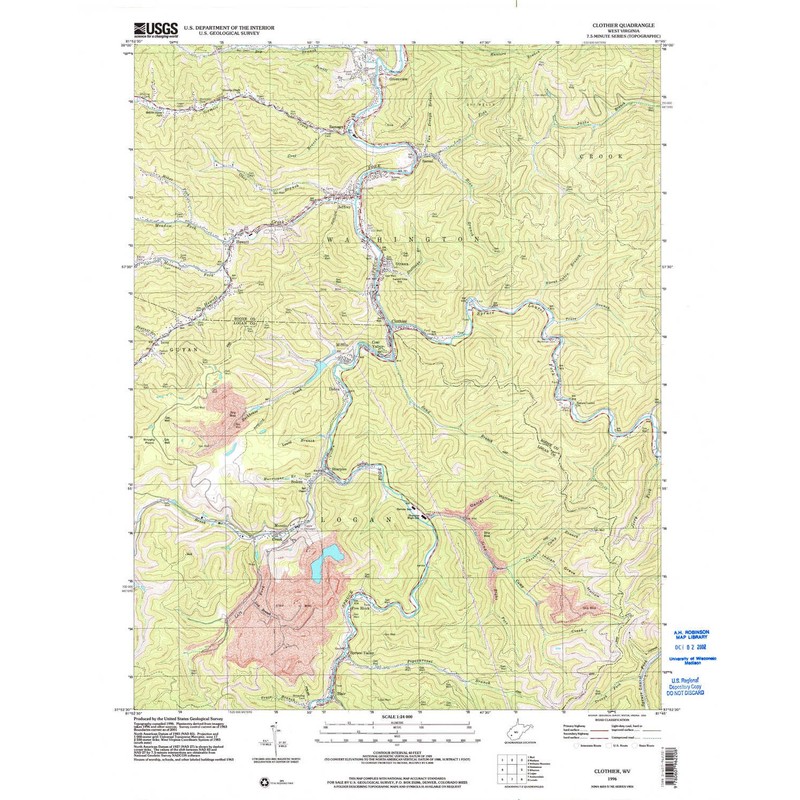 - USGS topographic map of Clothier, WV, at 1:24000 scale. High-quality paper print. Perfect for wall maps.