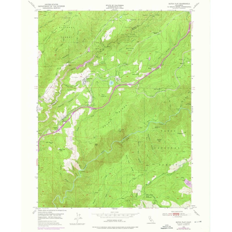 • USGS topographic map of Dutch Flat, CA, at 1:24000 scale. Lighter material. Waterproof. Tear-resistant. Foldable. Very durable. Perfect for backpacking and the outdoors.