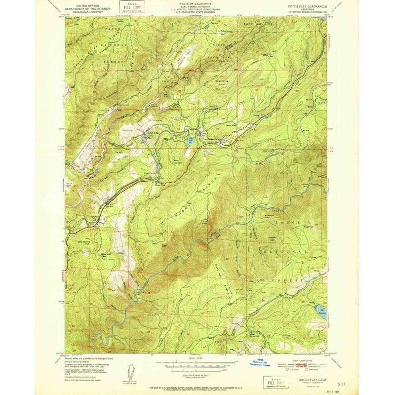YellowMaps Dutch Flat CA topo map, 1:24000 Scale, 7.5 X 7.5 Minute, Historical, 1951, 26.7 x 22 in - Paper