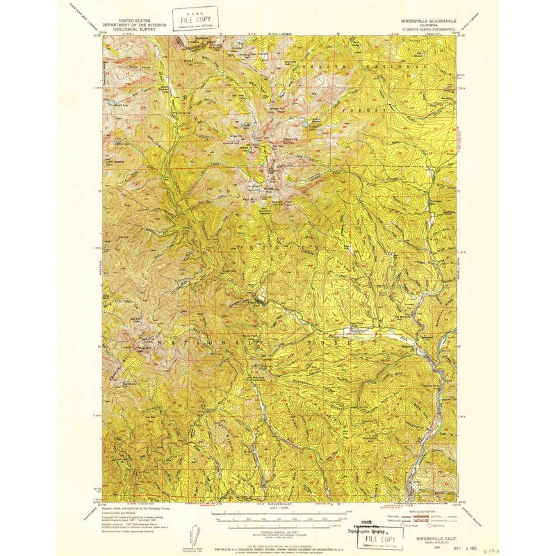 YellowMaps Minersville CA topo map, 1:62500 Scale, 15 X 15 Minute, Historical, 1950, Updated 1952, 20.8 x 16.6 in - Tyvek