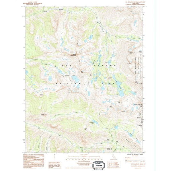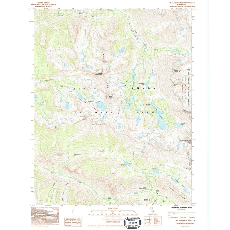 YellowMaps Mt Clarence King CA topo map, 1:24000 Scale, 7.5 X 7.5 Minute, Historical, 1992, Updated 1995, 26.7 x 22 in - Paper
