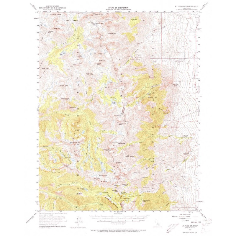 YellowMaps Mt Pinchot CA topo map, 1:62500 Scale, 15 X 15 Minute, Historical, 1953, Updated 1973, 20.8 x 16.6 in - Tyvek