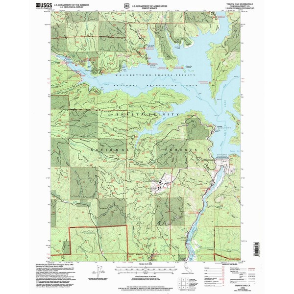 - USGS topographic map of Trinity Dam, CA, at 1:24000 scale. Lighter material. Waterproof. Tear-resistant. Foldable. Very durable. Perfect for backpacking and the outdoors.