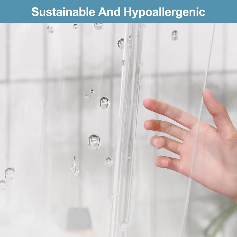- Water-Repellent: Our shower curtain liner is designed with a water-repellent polyester that helps water glide off easily and ensures quick drying. By reducing moisture buildup, it promotes a clean and dry bathroom environment