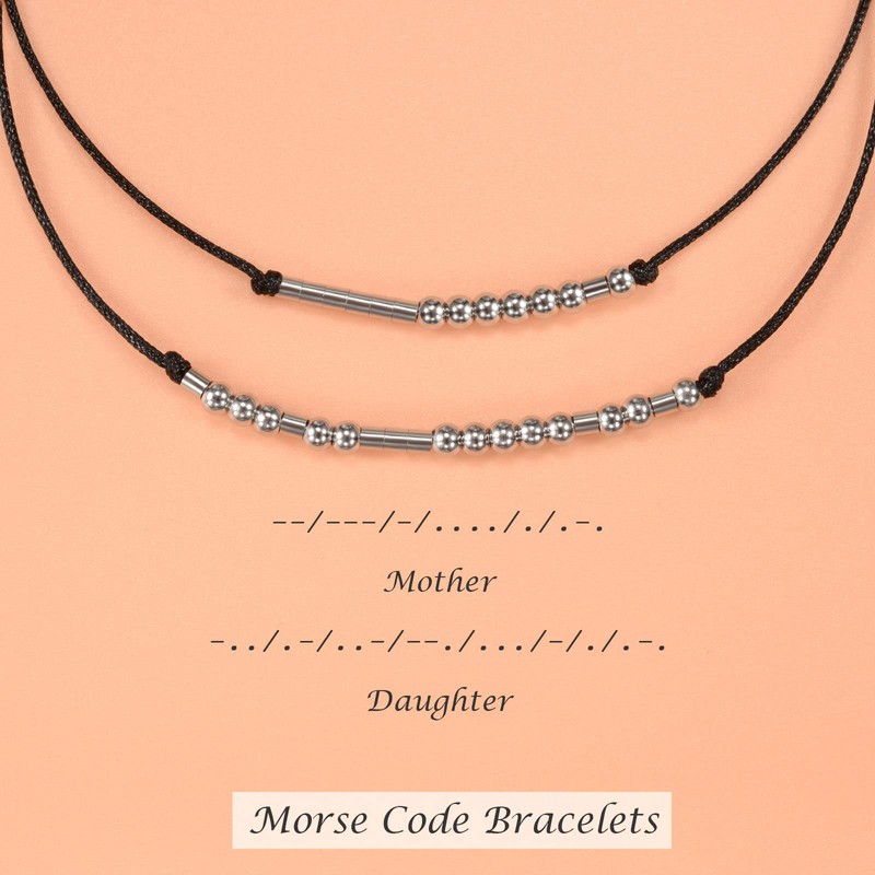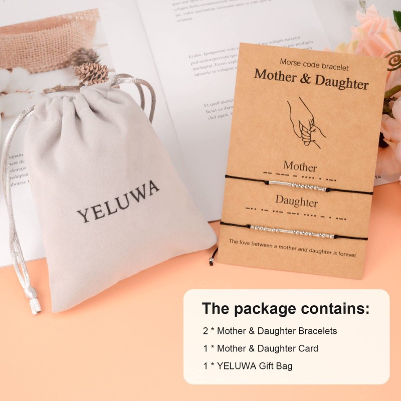 - đź’•Mother and Daughter Morse Code Bracelet: Adorable and dainty Morse Code Bracelet provided a gift card and YELUWA Velvet Bag. Share your secret word "Mother Daughter" with your Mom Daughter and give them this friendship bracelet as a special hidden message gift.