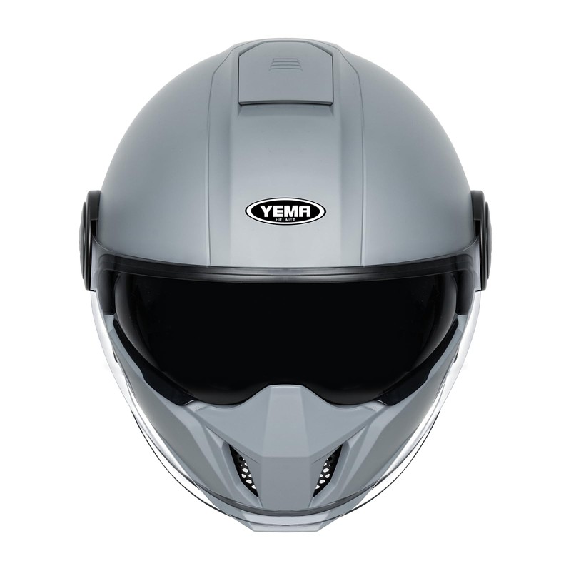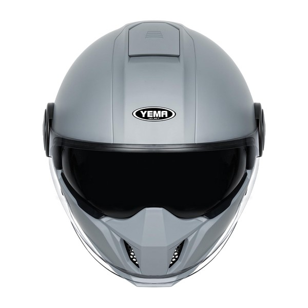 YEMA Convertible 3/4 Full Face Motorcycle Helmet DOT Approved - Dual Visor Motocross Off-Road Helmet for Adults, Modular Open Face Design for Street Bikes Scooters YM-653, Gray, S