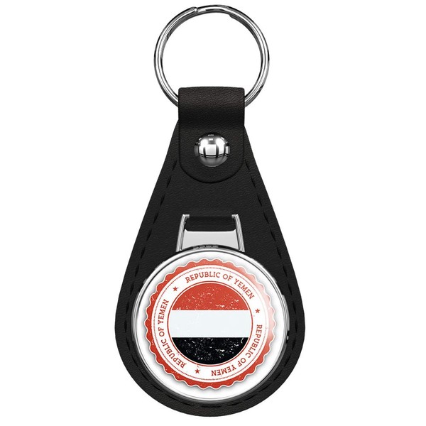 Yemen Grunge World Flag Stamp Keychain Black Premium Leather Key Chain with Key Ring