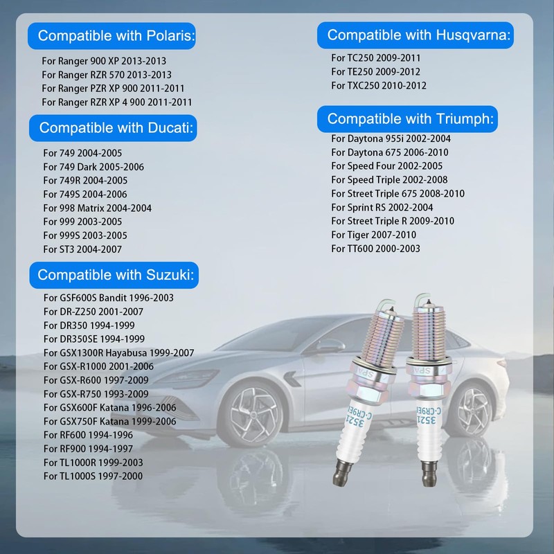Yeoflagtrade CR9EIX 3521 Spark Plugs Compatible with Polaris Ranger 900 XP RZR 570, for Yamaha FZ6R FX10, for Husqvarna TC250 TXC250, for Kawasaki ZX600 ZR550 Zephyr Replace for CR7E CR8E 6263 CR9E