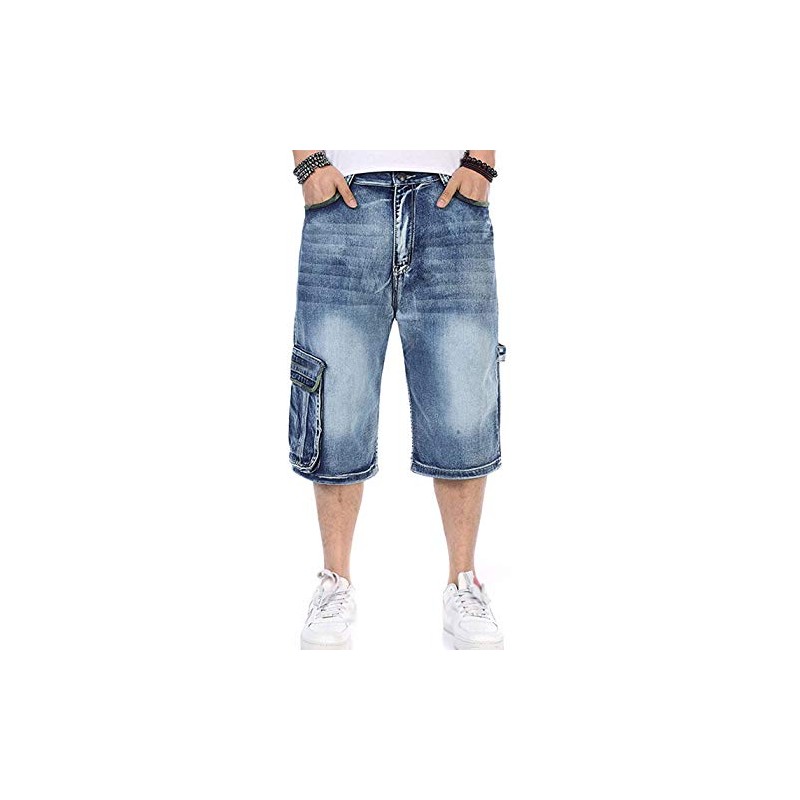 Yeokou Men's Loose Hip Hop Cropped Jeans Work Denim Shorts with Cargo Pockets (46, Light Blue)