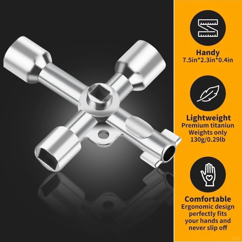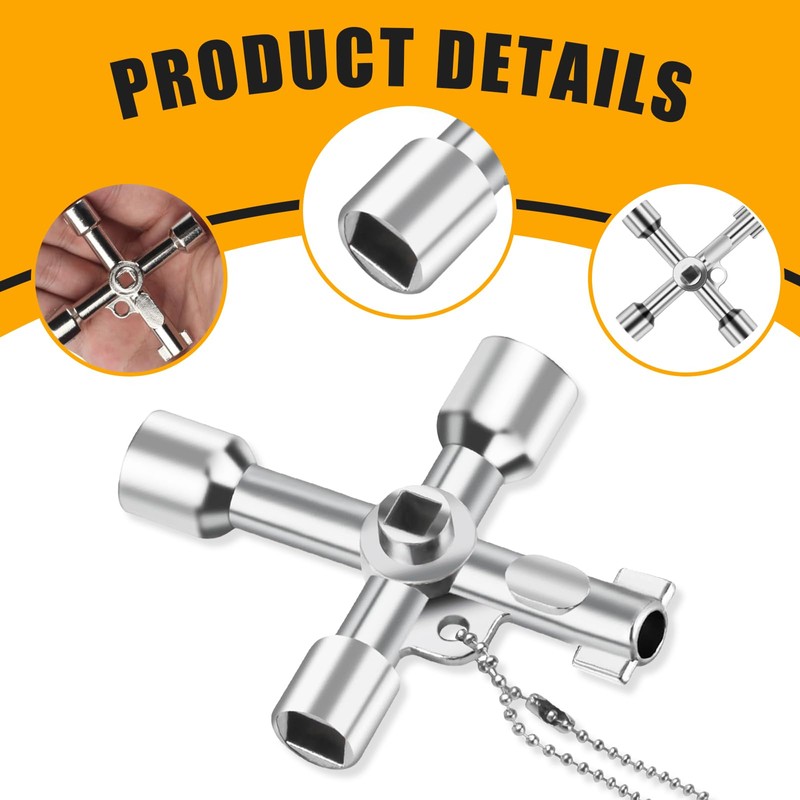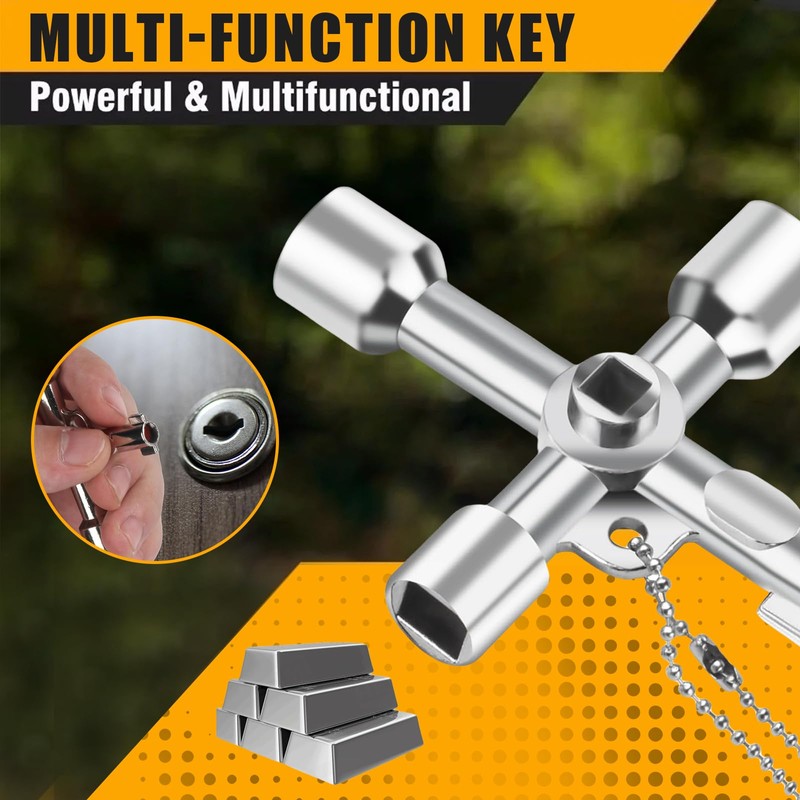 - Versatile Use Thanks to the 6 way design, this cross wrench is compatible with 99 percent of triangular and square locks on the market. Ideal for use in heaters, electricity, water and gas pipelines and many other applications