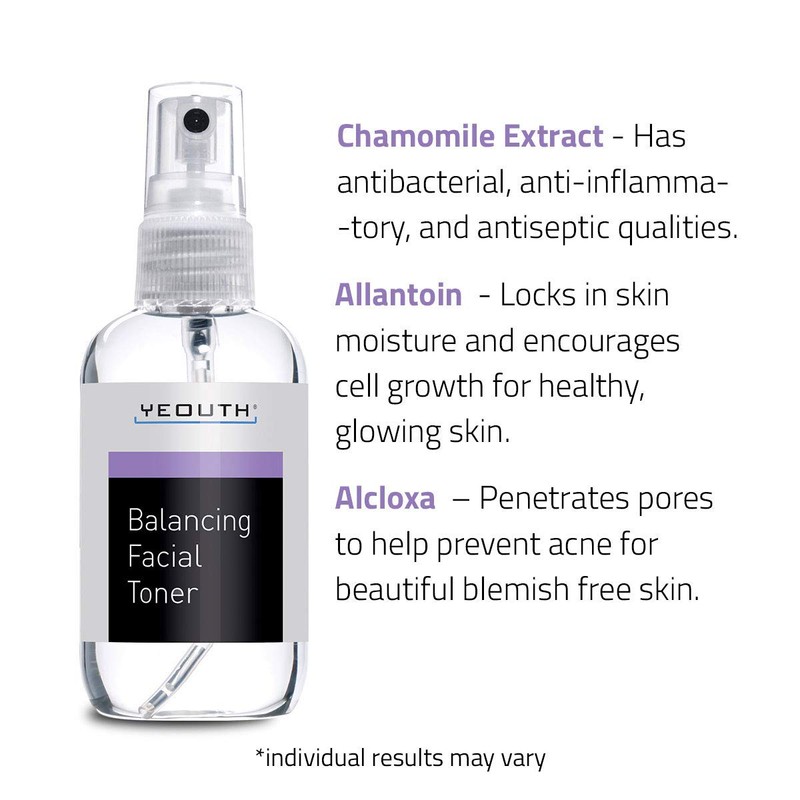 - One of the Best Anti Aging Toner for Face! YEOUTH Balancing Face Toner helps skin’s Ph levels. Enriched with Roman Chamomile Essential Oils & Allantoin. An extra ordinary formula to target wrinkles, fine lines, dry sagging skin & dark spots!