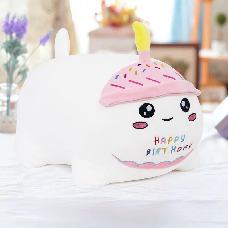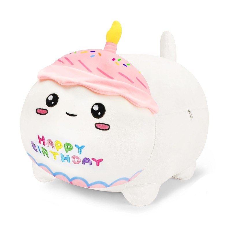 Yeqivo Birthday Cat Plush Pillow Stuffed Animal Toy, White Birthday Cat Plush Stuffed Animals, Soft Cat Plush Pillow for Kids(White Cat, 40cm/15.7inch)