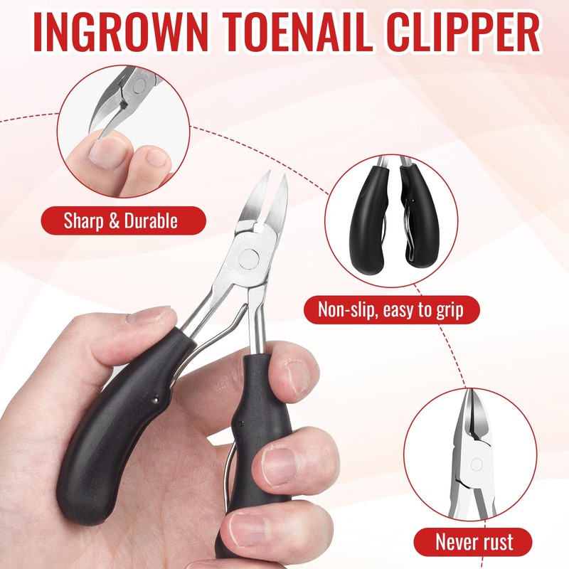 - Toenail Clipper for Ingrown NailOur ingrown toenail clipper can trim nails safely and solve the pain of ingrown nails. Heavy duty toenail clippers with non-slip long handle, ergonomically designed, comfortable to hold in your hand, not easy to slip, easy to trim your nails. Ideal for the elderly, diabetic and arthritic patients.