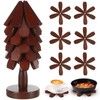 - Ingenious Design: our wood tree coaster set features an elegant and beautiful Christmas tree design that unfolds into the shape of a flower when you remove the wooden coasters from the stand and place the cookware on them; When you pick up the cookware, the coasters instantly shrink back into the tree shape; Adding natural beauty to your kitchen and dining table