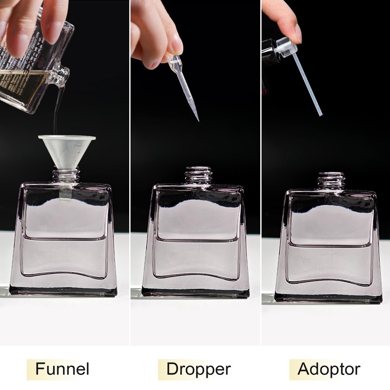 • Package:2 Pack 30ml/1 Oz glass perfume spray bottle and and 3 kinds of perfume dispenser(1 funnel,1 dropper,1 transferer).It is easy to dispense liquid into the perfume atomizer.