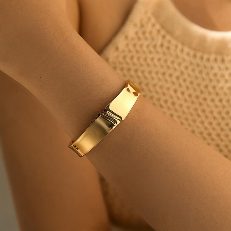 YERTTER Grunge Minimalist Metal Wide Irregular Open Bangle Cuff Bracelet Hammered Chic Wrist Cuff Gothic Chunky Bangle Statement Bracelets for Women (Gold)