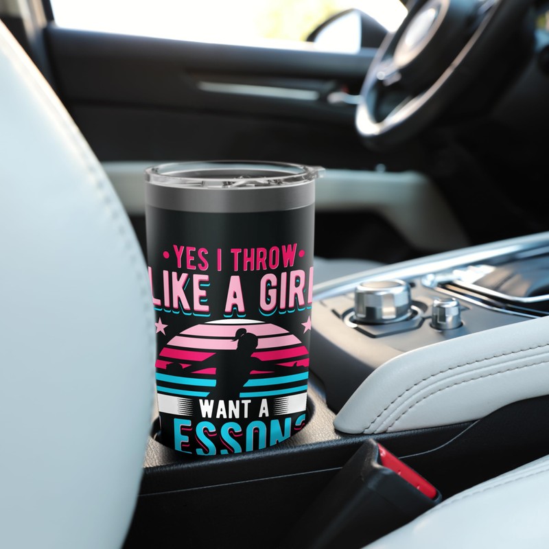 Yes I Throw Like A Girl Want A Lesson? Funny Discus Thrower Stainless Steel Insulated Tumbler