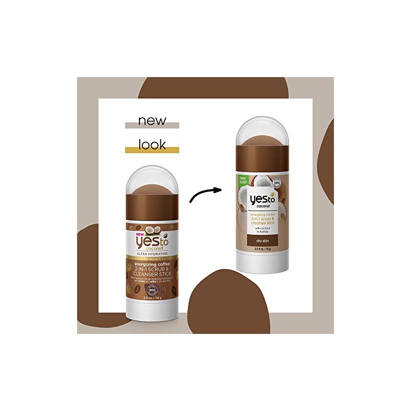 Yes To Coconut Ultra-Hydrating Energizing Coffee 2-in-1 Scrub & Cleanser Stick | Coconut Oil, Coffee Extract Face Cleanser & Face Scrub for Clean skin | 2.5oz