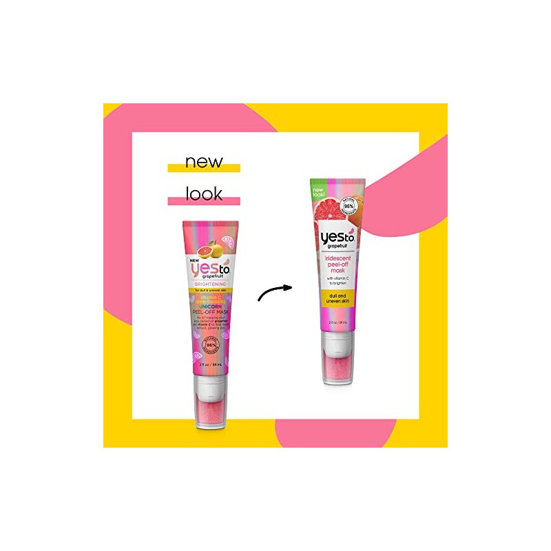 Yes To Grapefruit Brightening Vitamin C Glow-Boosting Unicorn Peel-Off Mask I Dull & Uneven Skin I Brighten & Smooth Skin I Vegan I 95% Natural Ingredients, 2 Fl Oz (Pack of 1)