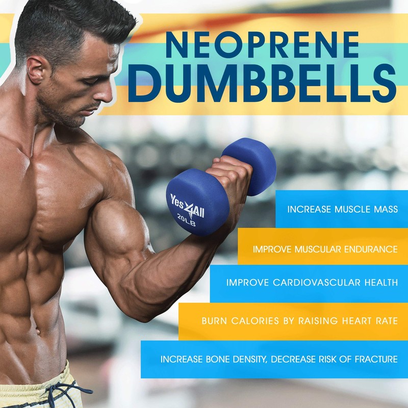 - GREAT FOR TOTAL BODY WORKOUT: Yes4All Neoprene Dumbbells are ideal to sculpt your arms, shoulders & back, build stamina & speed up metabolic rate. Perfect for overall health, balance, weight management, aerobics, cardio, yoga, and strength building