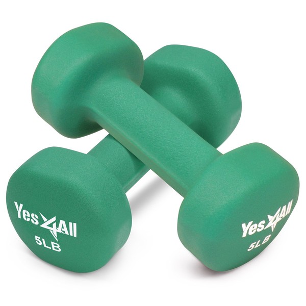 Yes4All 5 lbs Dumbbells Neoprene with Non Slip Grip – Great for Total Body Workout – Total Weight: 10 lbs (Set of 2)