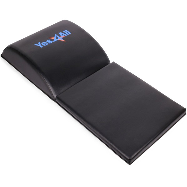 * **HIGH-DENSITY MATERIAL:** Constructed of high-quality soft foam with PVC cover, Yes4All Abdominal Mat features medium firmness to accommodate most users and does not flatten, tear and lose shape after repeated use. * **ERGONOMIC CONTOURED ARCH:** The exercise mat comes with 30-degree arch to follow the contour of your back, which is perfect to support your spine and lower back while doing rigorous ab exercises. * **EXTRA TAILBONE ATTACHMENT:** No more interruption with the newest model on the market! Attached tailbone pad helps to avoid chafing and burn for high-rep sit-up workouts and prevents the mat from slipping away during exercise. * **PORTABLE AND FOLDABLE DESIGN:** Yes4All Abdominal Mat is a total fitness solution that offers more and costs little. Its lightweight, portable features bring convenience for your daily workout routine. * **2-IN-1 COMBO AVAILABLE:** Aside from being sold individually, the Ab Mat is also available in combos with Yes4All Dual Ab Wheel of 3 different colors (Blue, Red, Black) for extra variety, versatility as well as increasing efficiency during your training