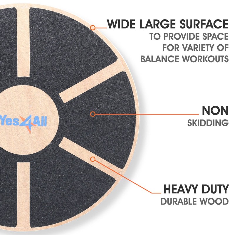 • DURABLE AND NON-SLIP SURFACE: Premium wooden balance board with non-slip pads on the surface provides a secure grip for absolute safety. 15.75" Diameter Large enough for both feet. Supports up to 300 lbs