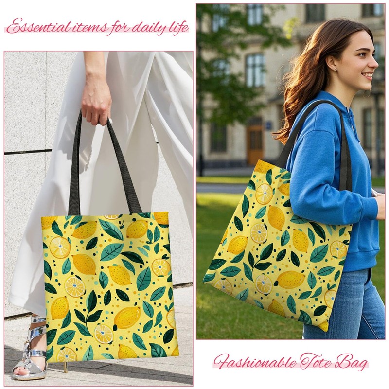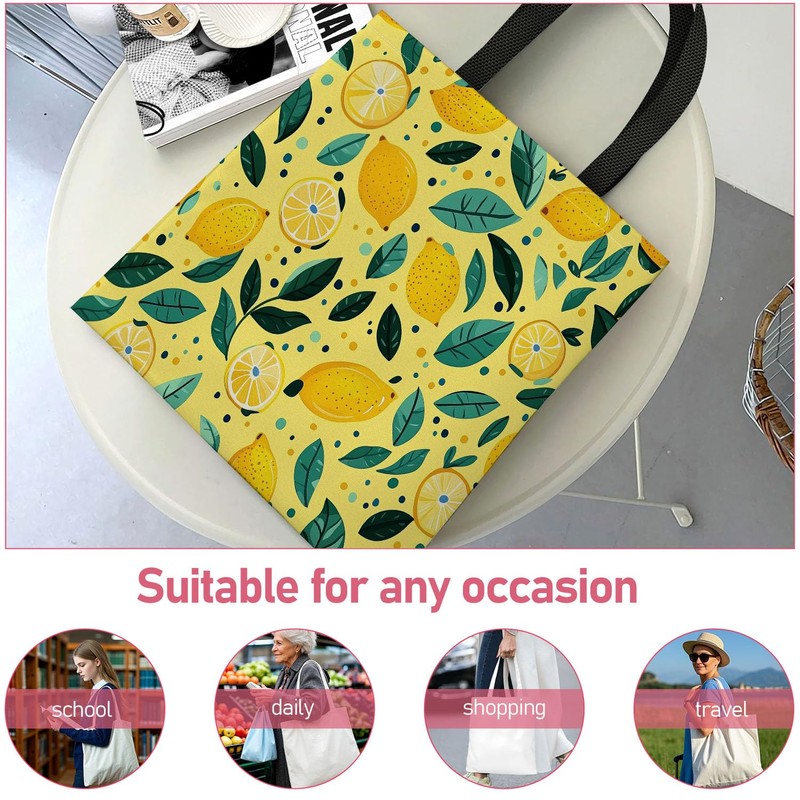 Yesad Canvas Tote Bag for Women with Zipper Inner Pocket, Canvas Tote for Daily Work Shopping, Lemon