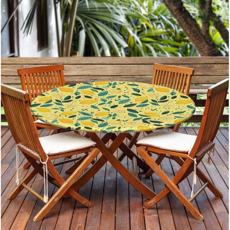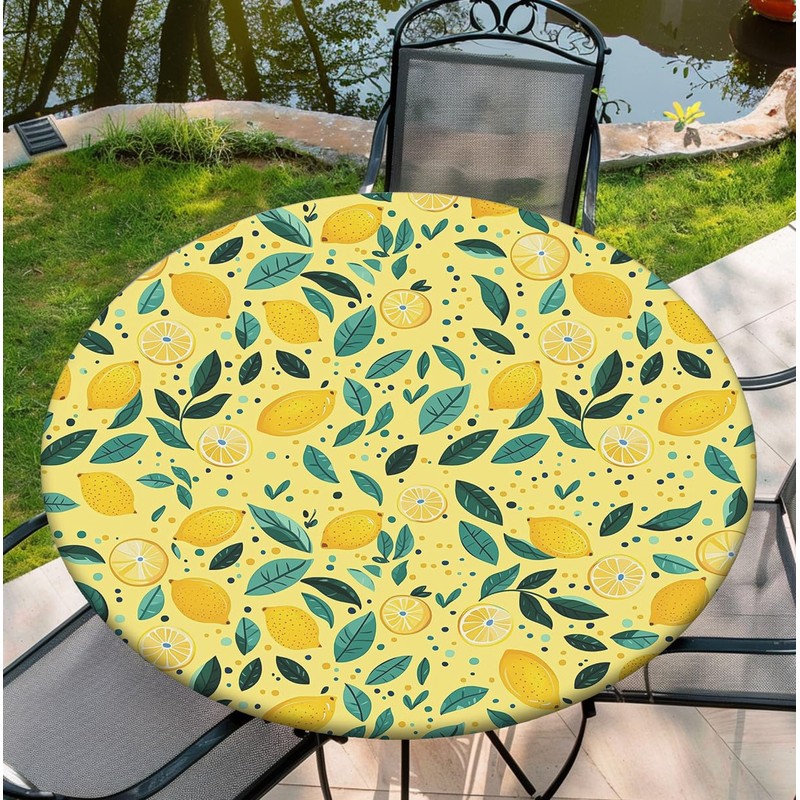 Yesad Waterproof Tablecloth with Elastic Tablecloth for Round Tables 36"-70" for Indoor Outdoor Patio Use, 44Inch, Lemon