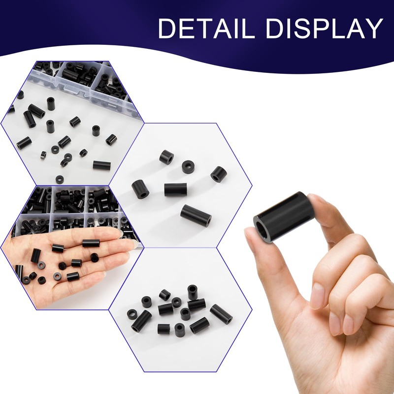- Black Spacer Sleeves Our insulating round spacers protect screws and parts from deformation, prevent corrosion and short circuits, thus extending the life of the equipment.