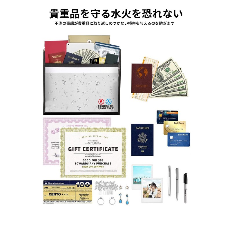 - 【大容量収納保護貴重品】パスポート、ライセンス、USBディスク、オフィスファイル、現金、手紙、貴重な写真、結婚証、出生証明、保険証、印鑑、小切手、カード類、通帳などの貴重品に全面的な保護を提供します。