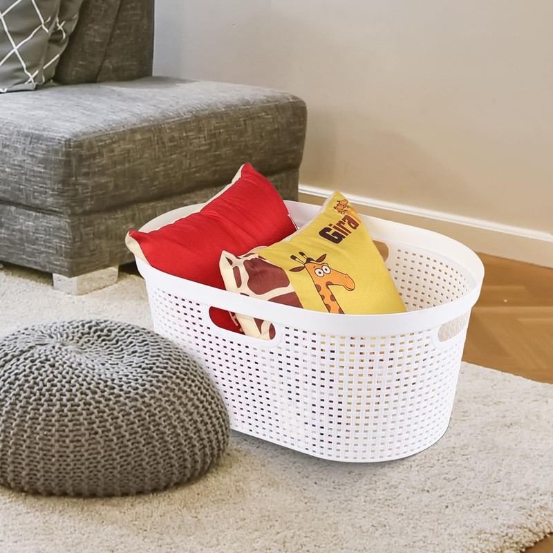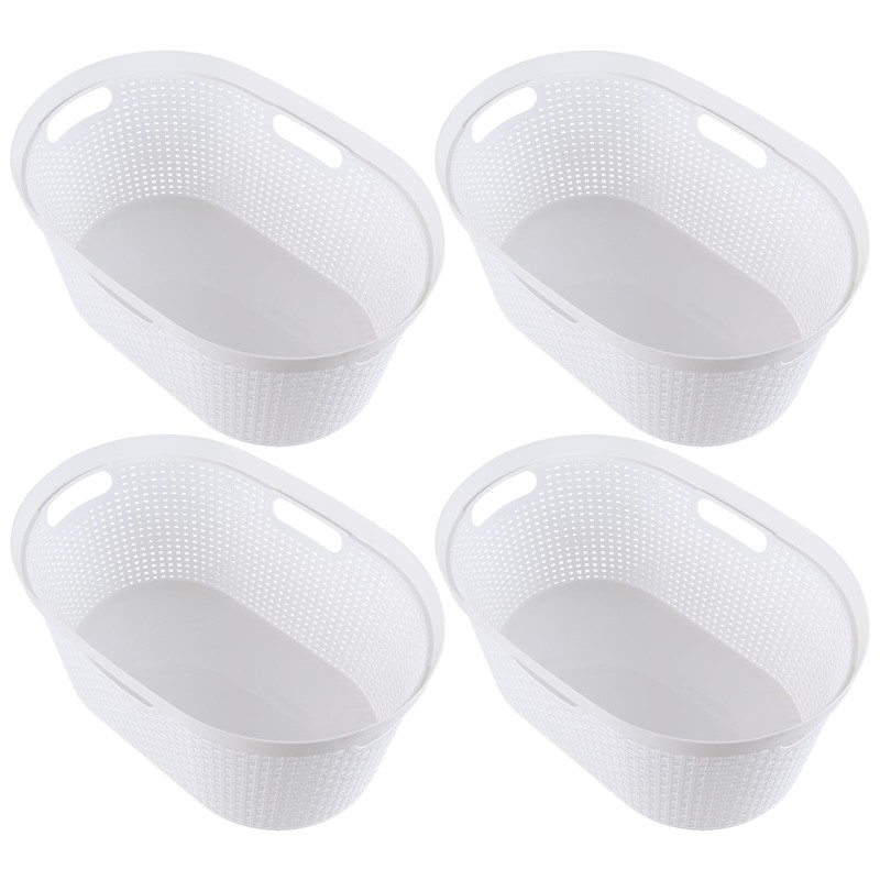 Yesdate 4 Pack Large Laundry Baskets, Plastic, White, 40L